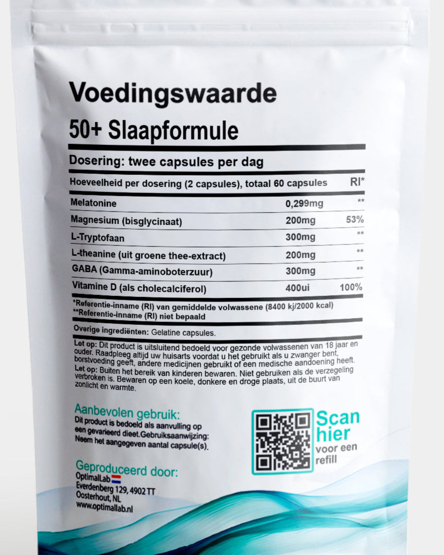 De Optimal Sleep 50+ Slaapformule® is een wetenschappelijk onderbouwde slaapformule, speciaal ontworpen voor 50-plussers en ondersteund door meer dan 265 studies. Wij zijn zo overtuigd van deze formule dat we een geld-terug-garantie van 90 dagen bieden.